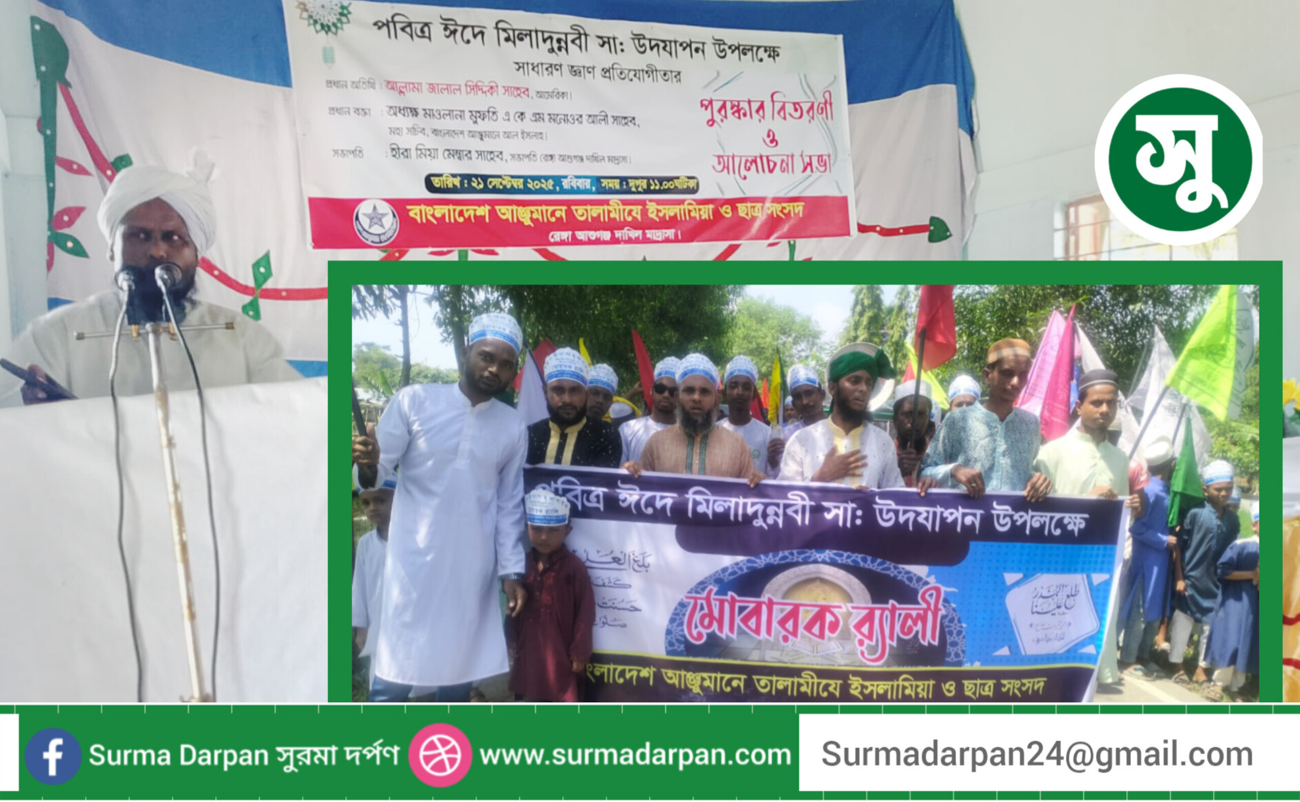 ঈদে মীলাদুন্নবী সা. উপলক্ষ্যে বৃহত্তর মোগলাবাজার বাসীর উদ্যোগে ও বাংলাদেশ আনজুমানে তালামীযে ইসলামিয়া মোগলাবাজার ইউনিয়ন শাখার আয়োজনে “মুবারক র্যালি” অনুষ্ঠিত হয়েছে। ২২ সেপ্টেম্বর ২০২৫, সোমবার, বাদ যুহর এ র্যালি অনুষ্ঠিত হয়। র্যালিটি মোগলাবাজারের বিভিন্ন সড়ক প্রদক্ষিণ করে এক সংক্ষিপ্ত সমাবেশের মাধ্যমে শেষ হয়। র্যালিতে প্রধান অতিথি হিসেবে উপস্থিত ছিলেন বিস্তারিত..